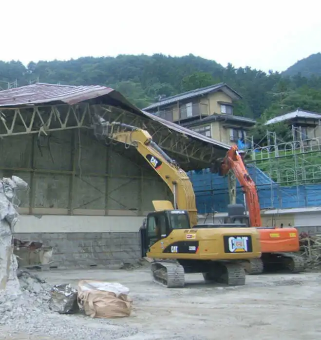 人力でハンマーや溶接等を使う方法や、重機(ユンボ)を使う方法で解体します。